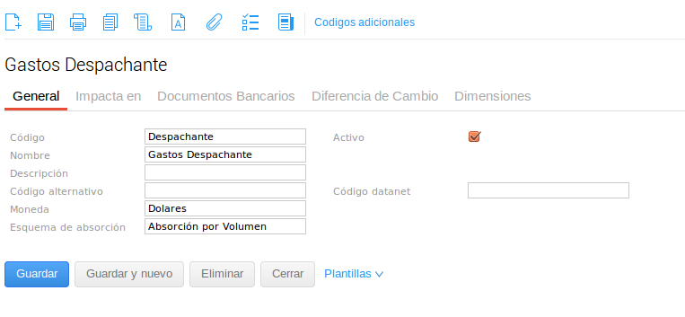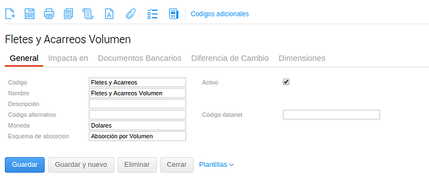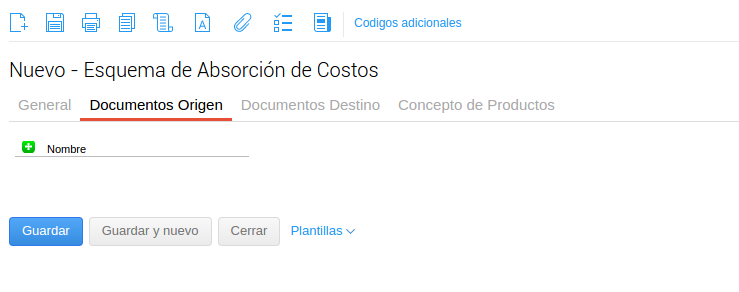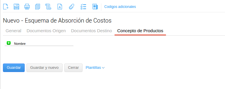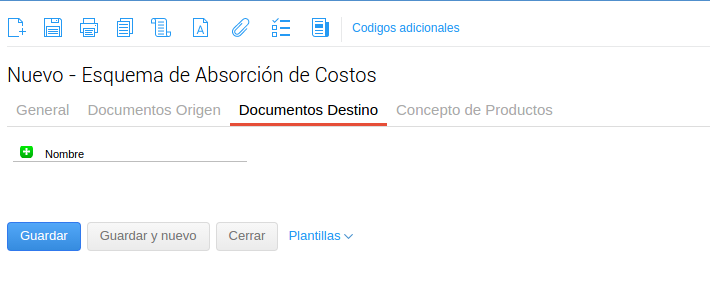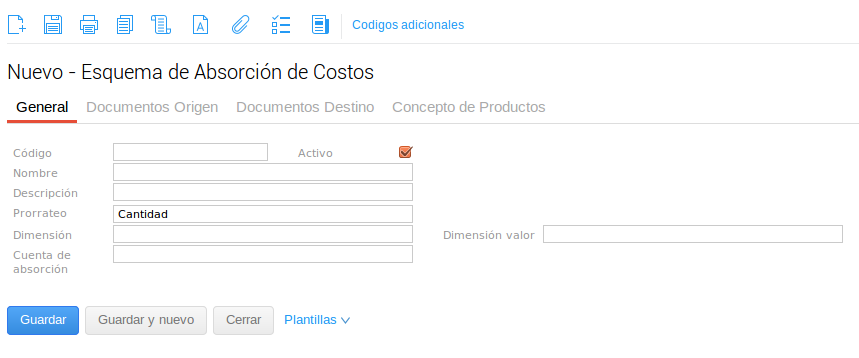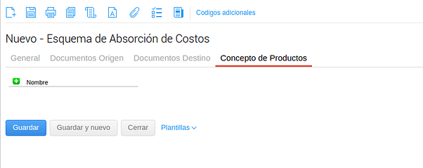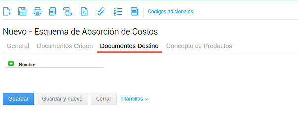 - Código: código que se le va a asignar al esquema de absorción de costos que se está dando de alta.
