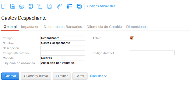 - Cuenta de absorción: define la cuenta con la cual el proceso de valorización realiza el asiento.