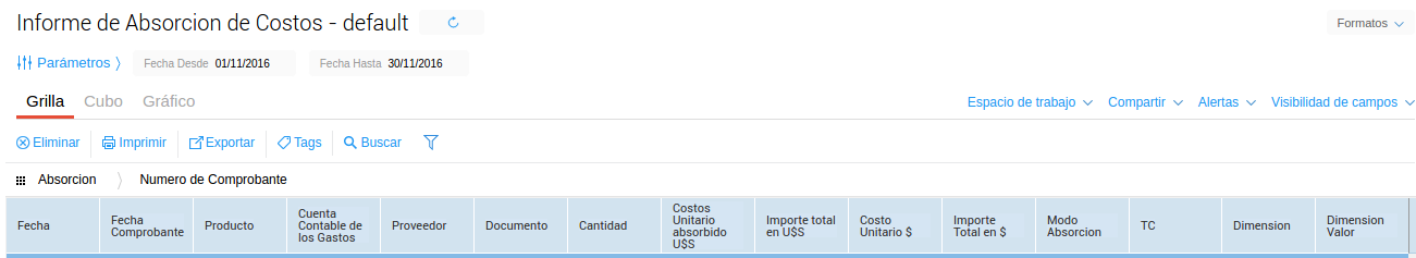 Fecha: Es la fecha de la Absorción de Costos. A su vez, es un enlace que al presionarlo, redirecciona a la Absorción.