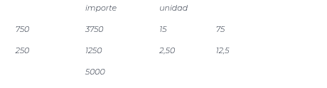 Importe total U$S: Las unidades por la columna mencionada anteriormente.