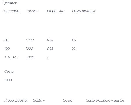 Si el esquema de absorción seleccionado es por importe, el sistema distribuye el importe del gasto en forma proporcional al costo del producto.