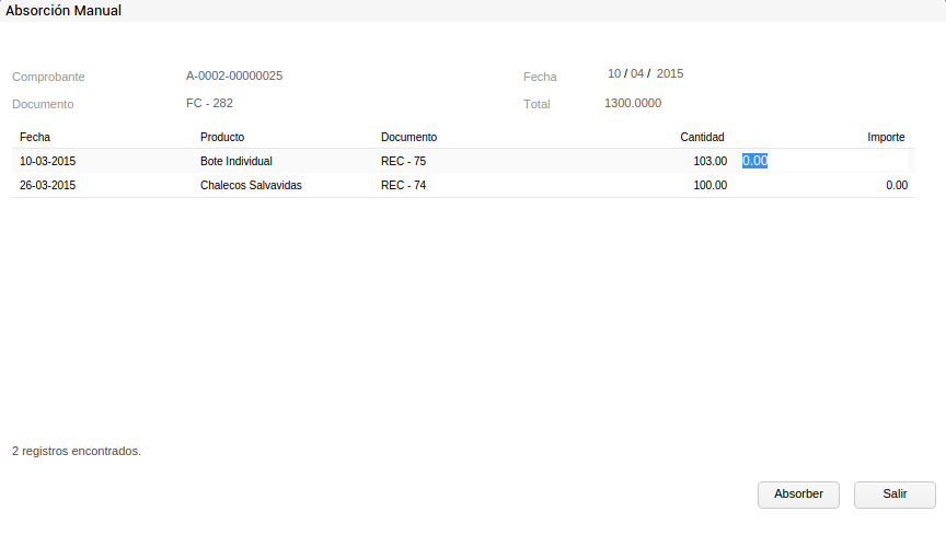 En este ejemplo, se cargan facturas separadas. La factura del producto sobre el que se va a realizar la absorción y una factura por cada gasto.