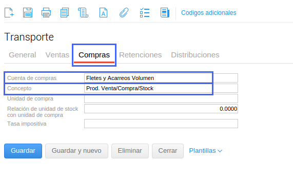 Nota: los gastos deben tener configurados las cuentas contables donde se indica qué esquema de absorción utilizan, como así también el concepto de productos. Estos se configuran en la solapa Compras del producto.