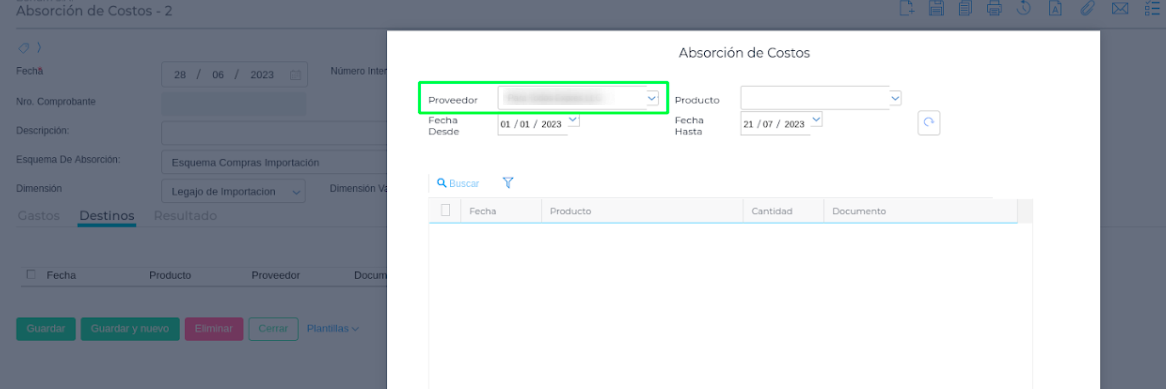 Al querer realizar una absorción de costos se quiere incorporar un documento destino, pero el sistema no lo trae.
