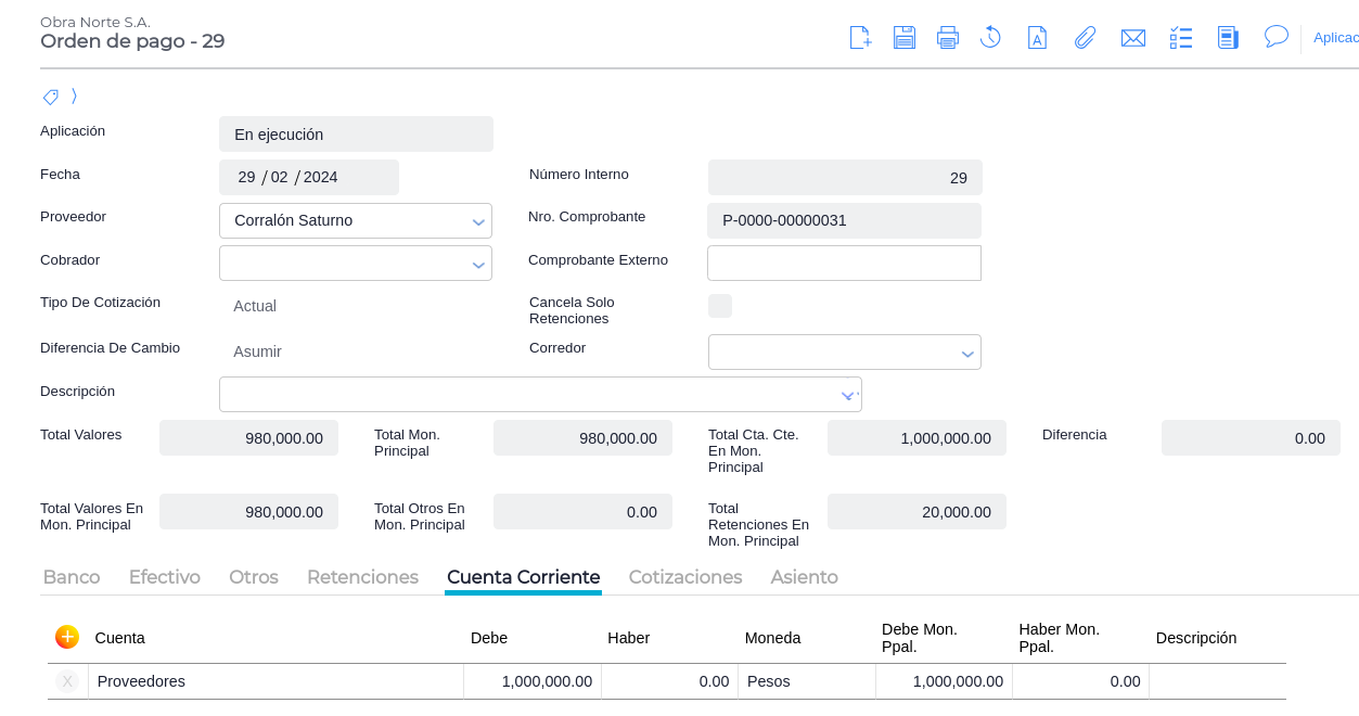 1- Crear una Orden de pago generando el anticipo al proveedor: