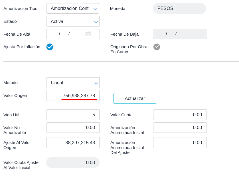- ¡Listo! Ahora el Valor Origen de la ficha de la Obra en Curso coincidirá con el saldo de la cuenta contable del libro mayor.