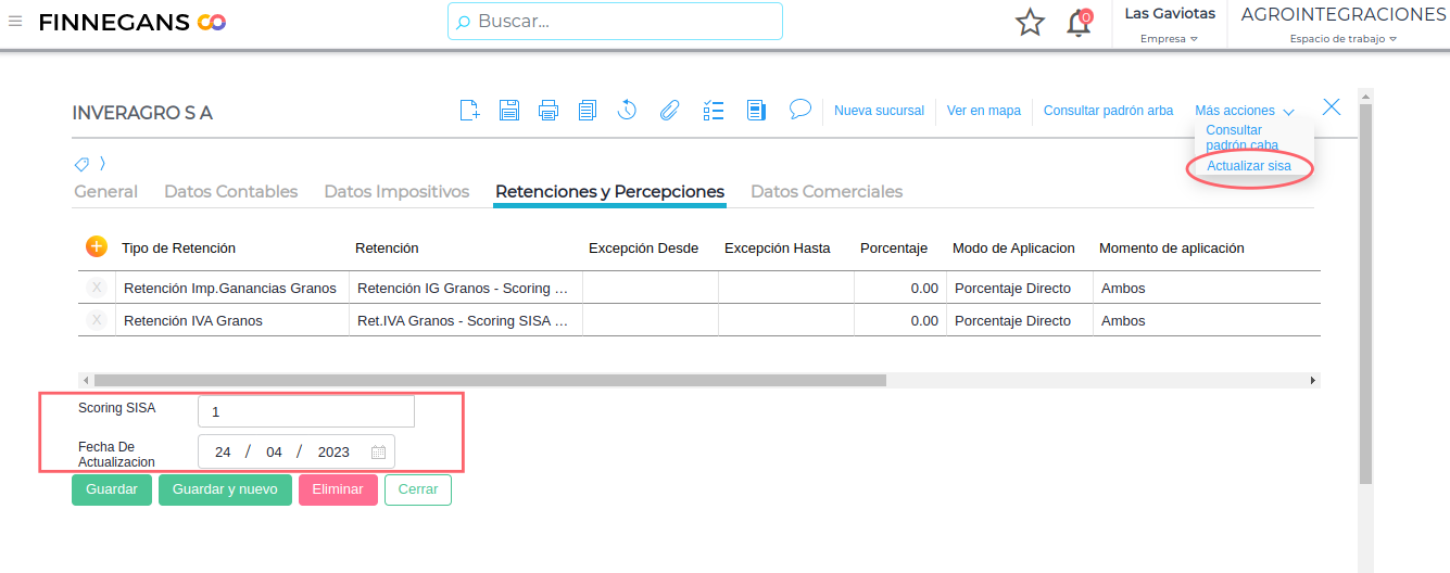 Actualización automática de retenciones y scoring SISA de proveedores granos