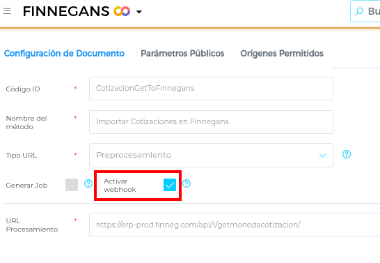 Clickear en el checkbox Activar webhook: