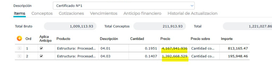 Al intentar realizar la actualización por índice CAC de un certificado correspondiente a un subcontratista, en el historial de actualizaciones se visualiza que el proceso fue ejecutado correctamente. Sin embargo, el certificado mantiene el valor histórico y no refleja la actualización.