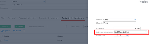En el caso en que se desee trabajar con más de un índice, se puede asignar el mismo desde los distintos tarifarios.
