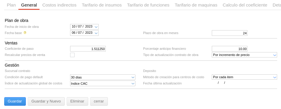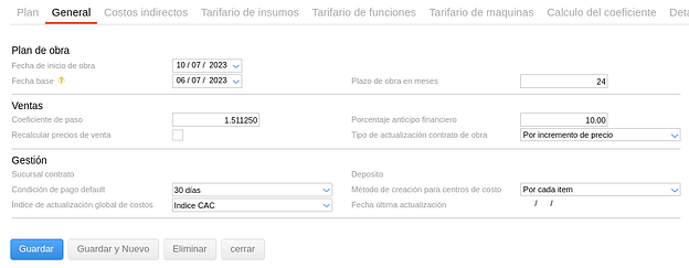 Siempre que el campo “Índice” se vea vacío, el sistema utilizará el índice definido en la solapa general del Plan de Obra.