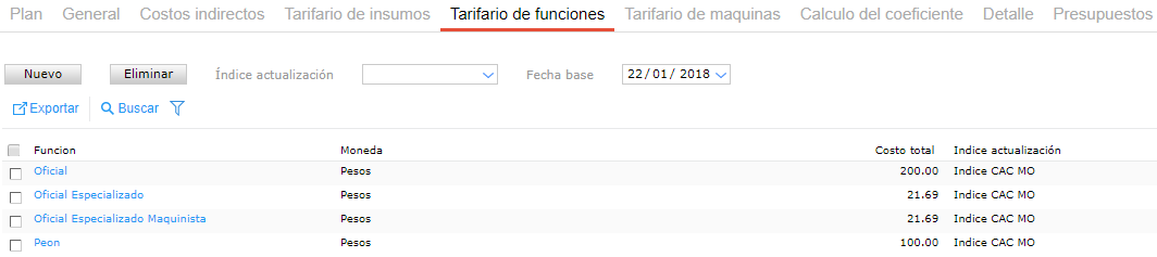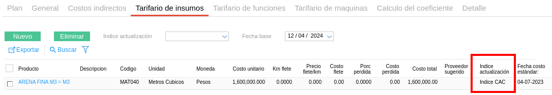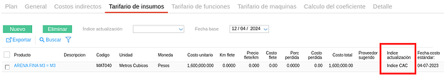 Como se observa, la fecha correspondiente a la actualización fue modificada y se observa que en el segundo periodo el costo unitario de cada ítem evolucionó acorde a la evolución del índice. Es decir, todos los costos posteriores a la fecha de actualización aumentaron.