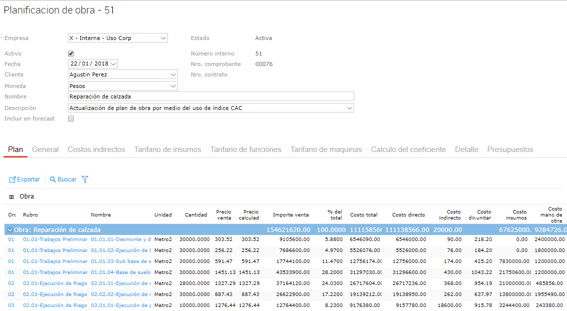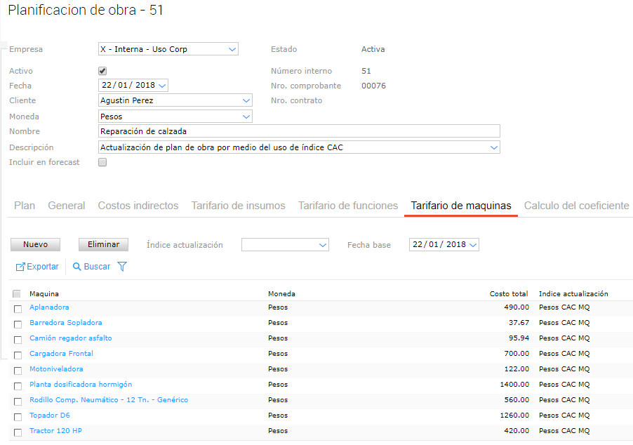 La actualización por índice CAC permite realizar actualizaciones en los precios de los distintos recursos (mano de obra, maquinaria y materiales) de tu plan de obra en función de los índices seleccionados..