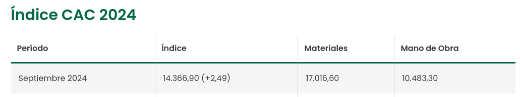 - Índice CAC MO (Mano de Obra)