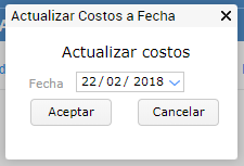 - Actualizar costo: se selecciona para realizar el proceso de actualización.