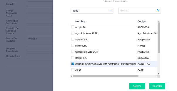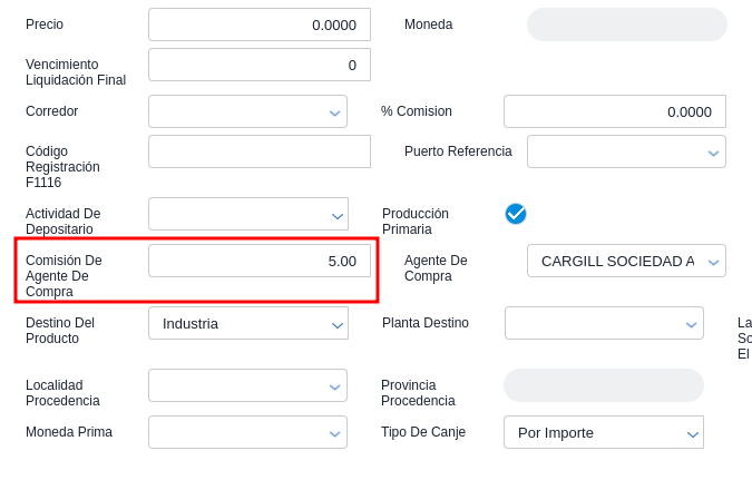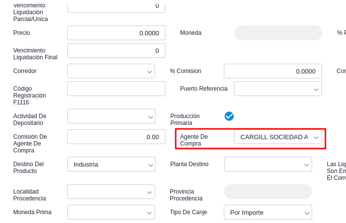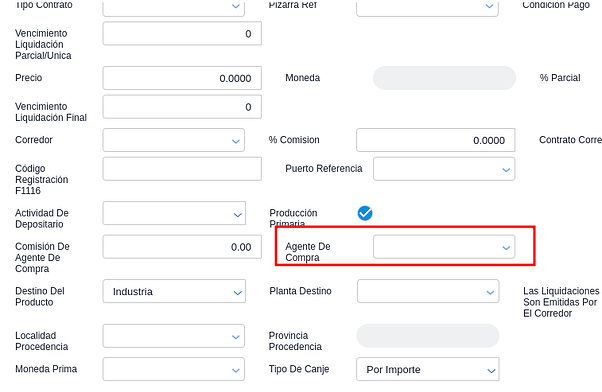 2.Establecer un agente de compra válido dentro del contrato de compra de granos:
