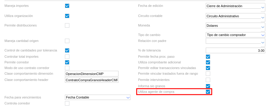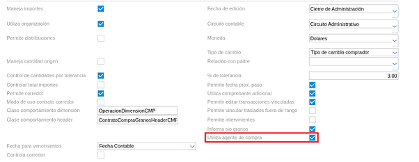 El tipo de documento debe tener el check activado “Utiliza agente de compra”: