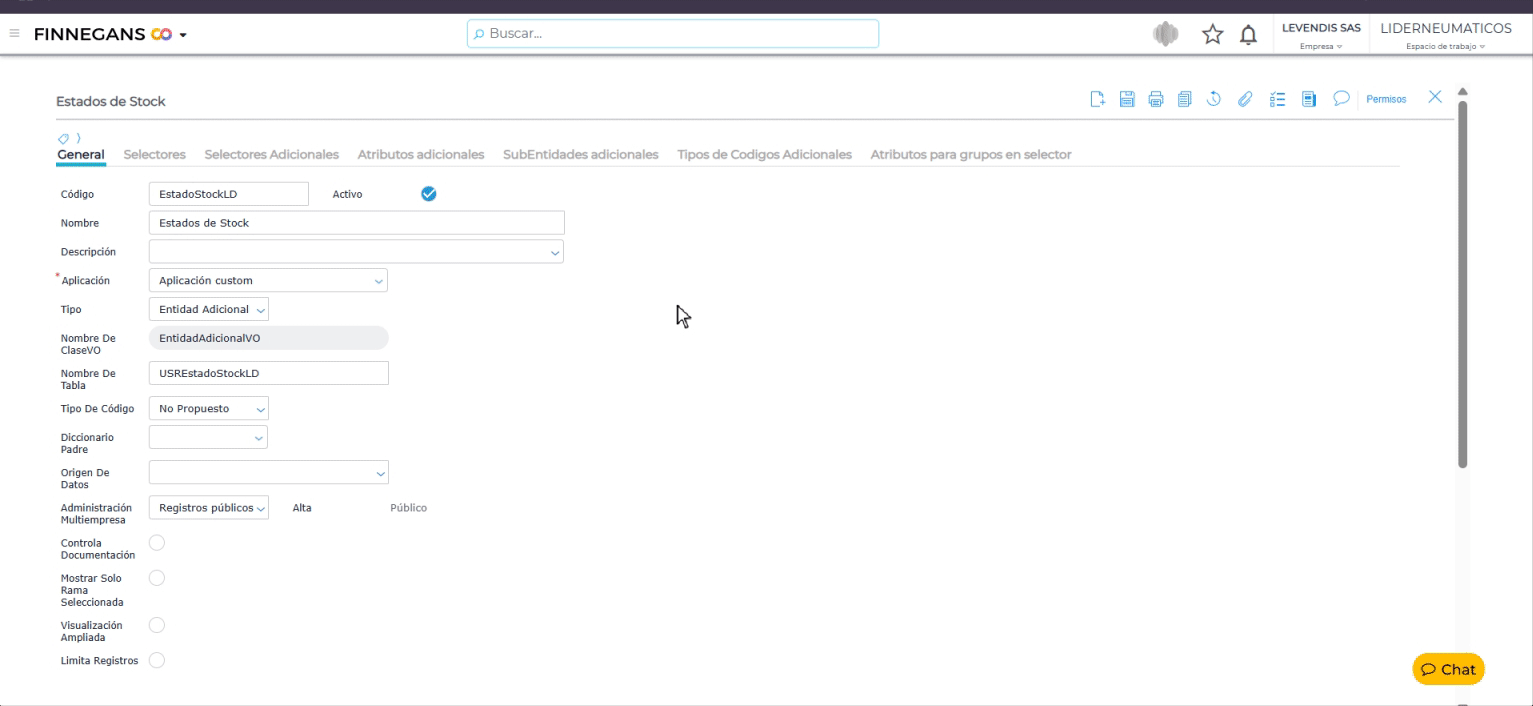 Importarte: Repetir este procedimiento en cada campo Selector grisado. Luego guardar el Diccionario.