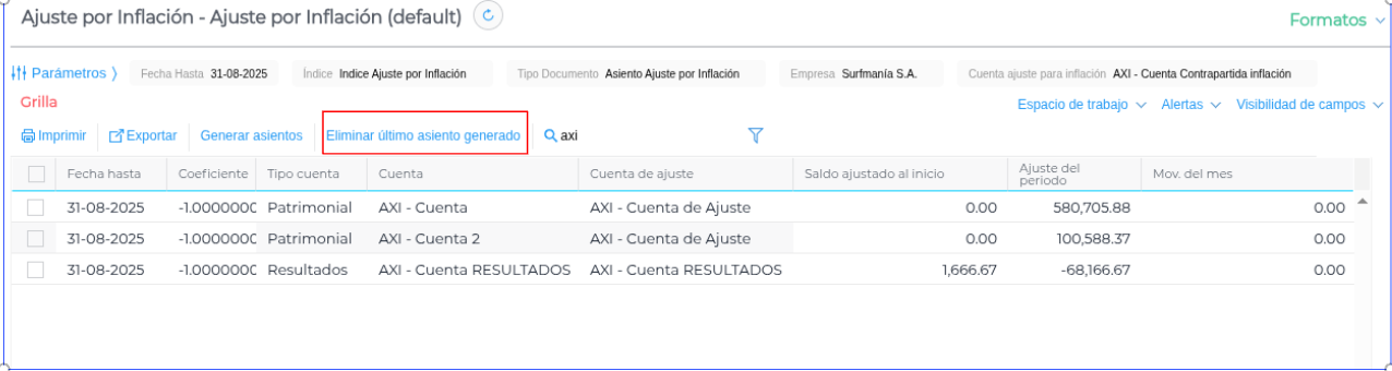 Se ha agregado un nuevo botón para eliminar el último asiento de ajuste generado y corregir errores fácilmente.