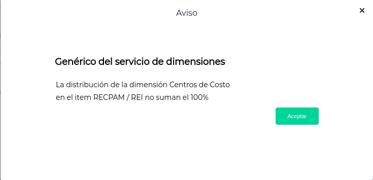 Si la cuenta de resultado por exposición al cambio en el poder adquisitivo de la moneda exige centro de costo (Cuenta RECPAM/REI), toma la distribución configurada en la misma (Cuenta RECPAM/REI). Si esta cuenta no tiene una distribución default, no se generarán los asientos y el sistema arrojará el aviso expuesto.