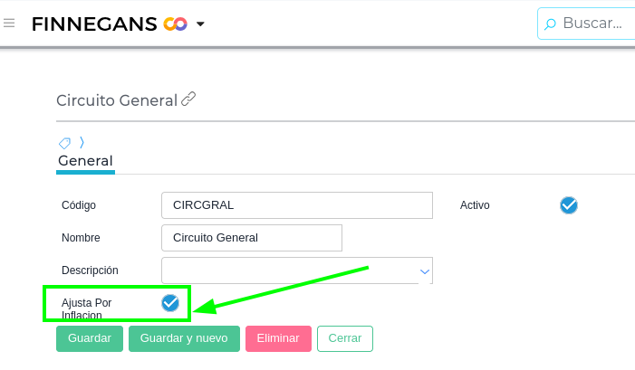 Circuito General y Circuito Ajuste por Inflación: Ambos circuitos deben tener el “check de ajusta por inflación” activo. Esto es fundamental para que el sistema reconozca y procese correctamente los ajustes.