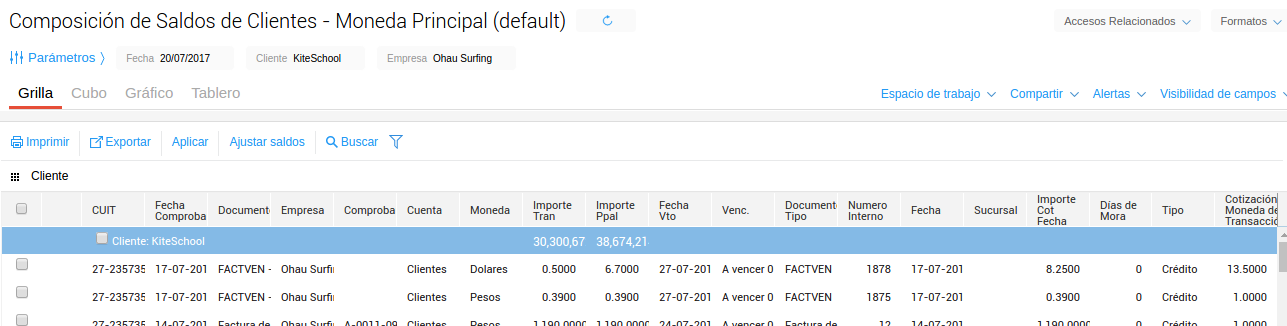 Una vez seleccionados los comprobantes, se presiona el botón Ajustar Saldos y se completan los parámetros.