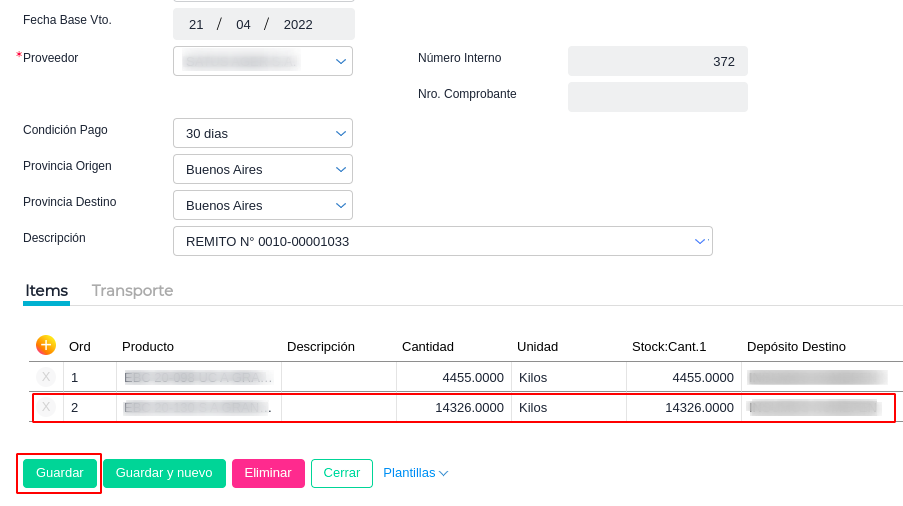 Se debe volver a guardar la recepción, luego de la modificación realizada.