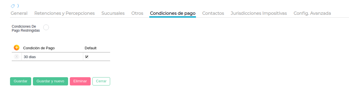 - Completar la solapa “Condición de pago”