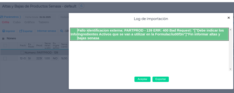 Cuando deseo informar un alta de producción de fitotrazables en Senasa en la vista de ALTAS Y BAJAS DE PRODUCTOS SENASA, me aparecen alertas que no me permiten hacerlo: