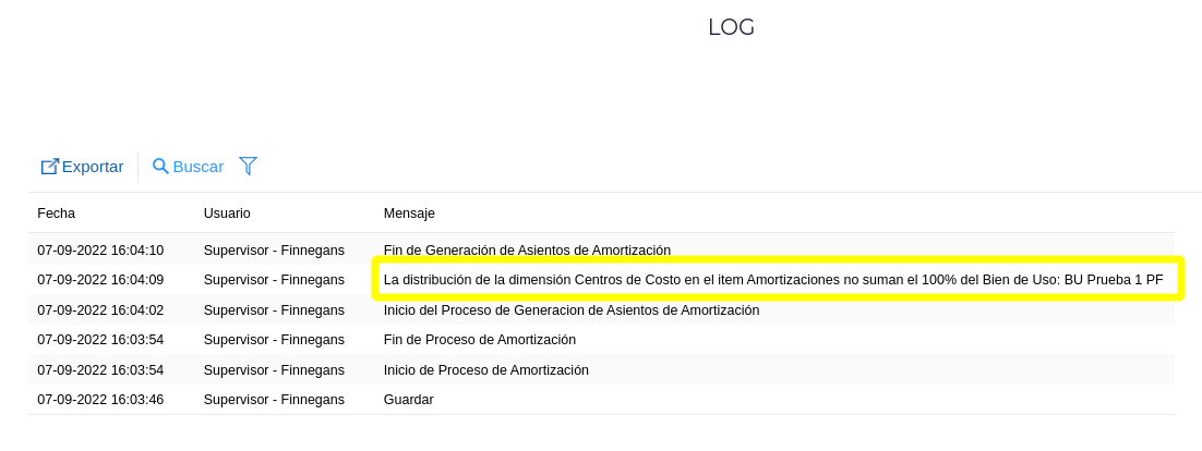 Al realizar los asientos dentro de una amortización de bienes de uso se puede visualizar en el LOG el siguiente mensaje: