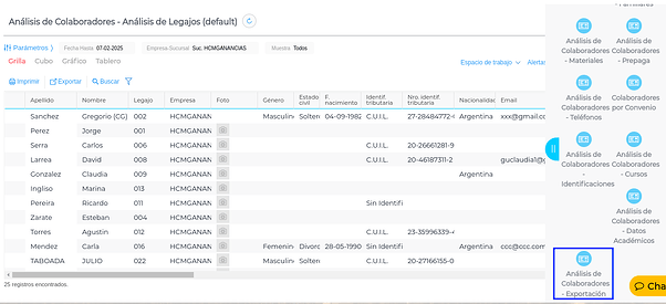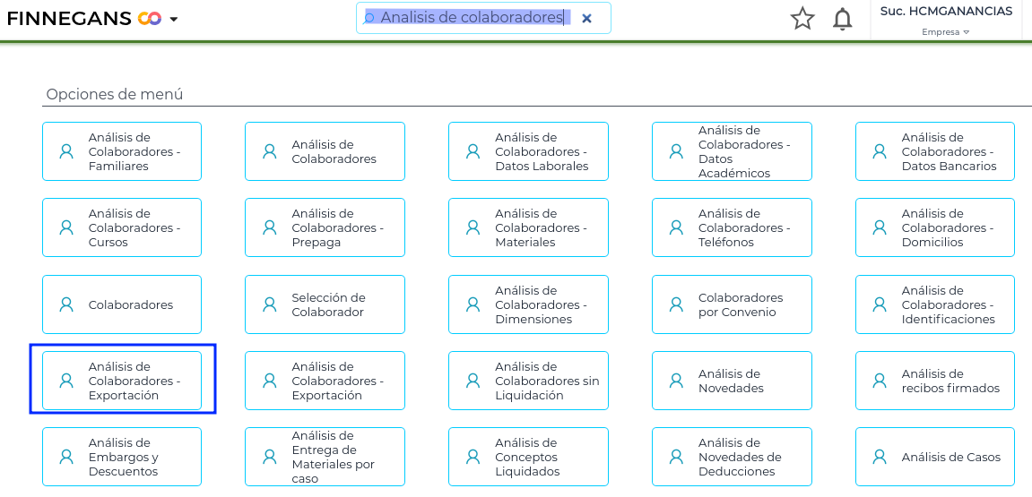 Luego ingresar a los accesos relacionados y seleccionar Análisis de Colaboradores - Exportación