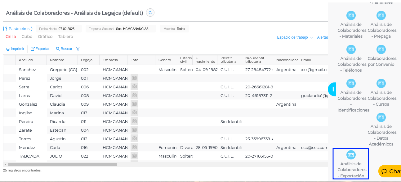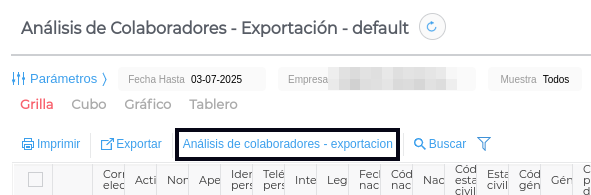 De ambas formas se accede al Análisis de Colaboradores - Exportación