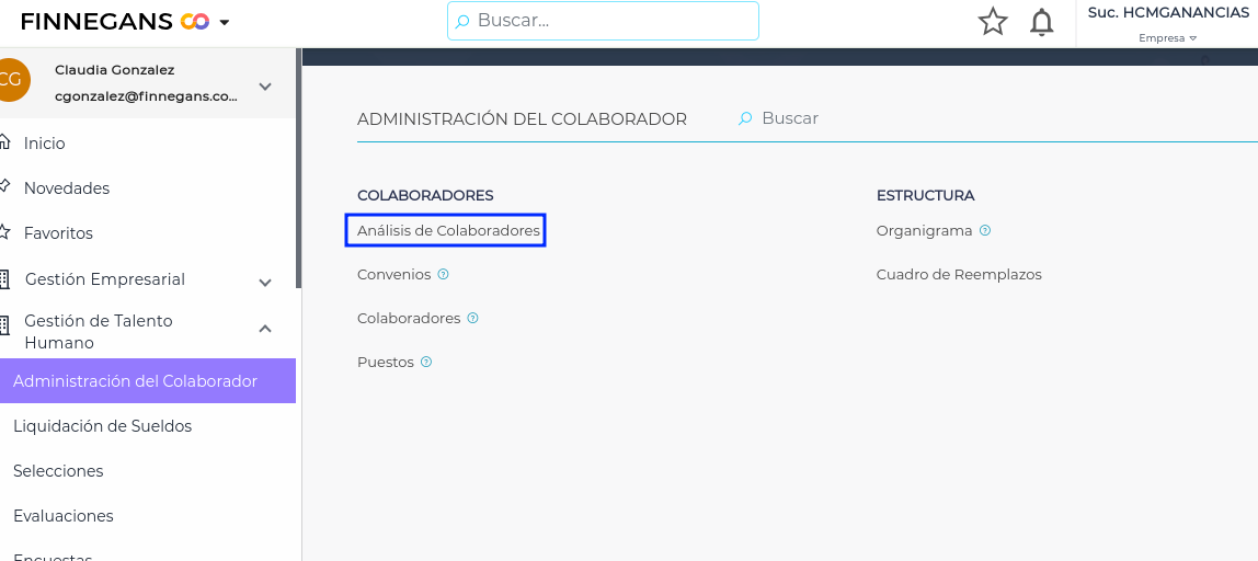 Gestión de Talento Humano → Administración del Colaborador → Análisis de Colaboradores