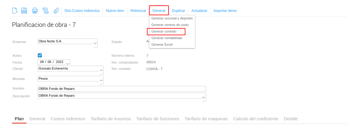 Respuesta: Se debe verificar que esté generada la sucursal y los centros de costos. Una vez realizadas las modificaciones e indicados los avances planificados dentro de cada ítem, es necesario generar contabilidad nuevamente.