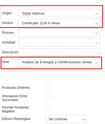 -Configura el certificado 1116A de venta como destino del traslado.
