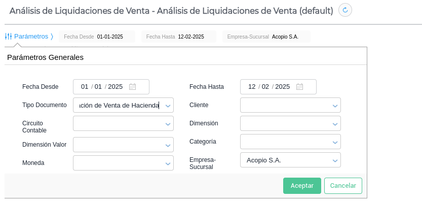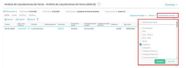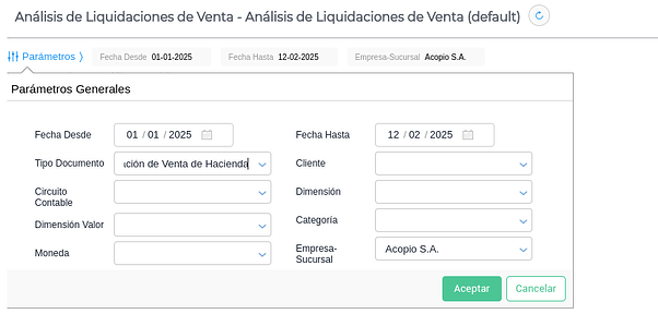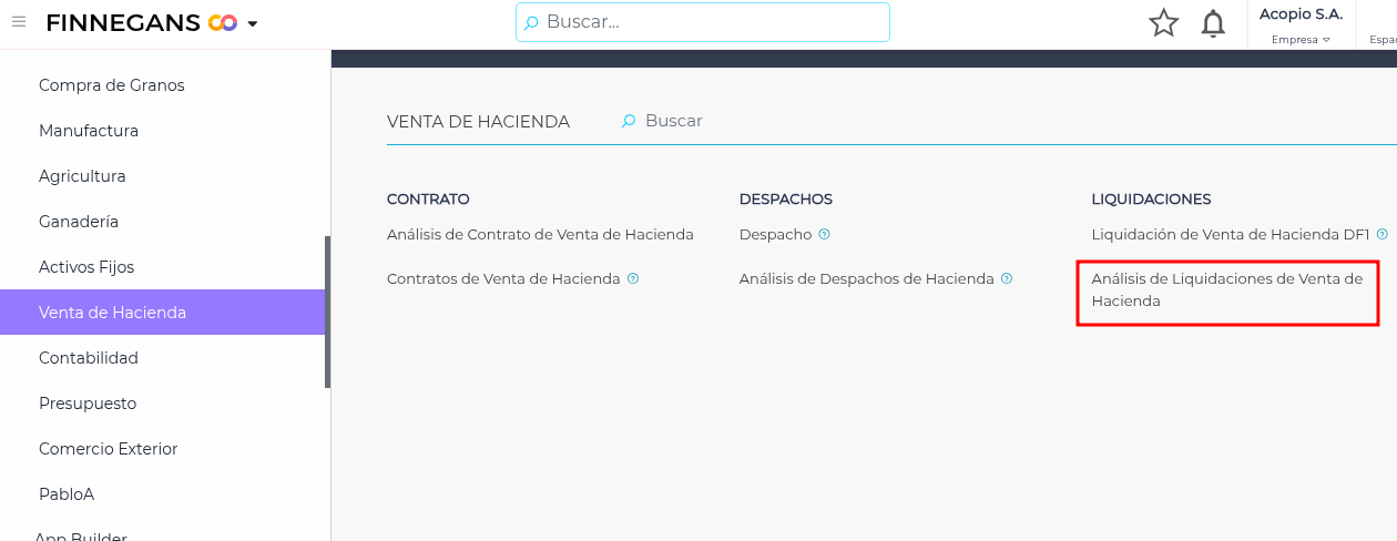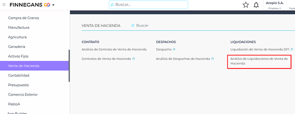 Accedé desde Venta de Hacienda → Análisis de liquidaciones de venta de hacienda.