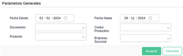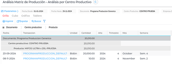 - Información clara sobre los parámetros que se desean consultar (centros productivos, rangos de fechas, etc.).