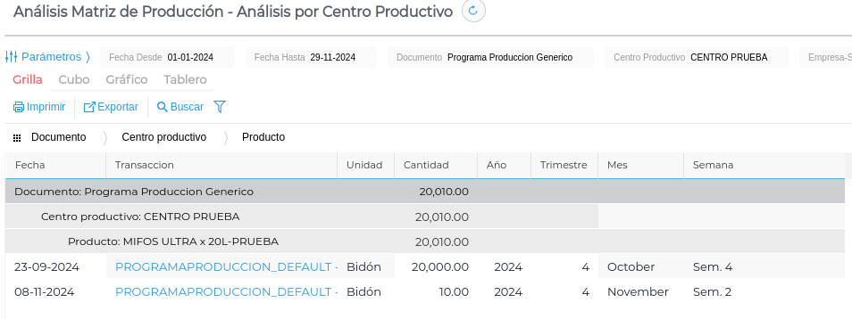 - Documento: se selecciona el documento de Programa de Producción Genérico
