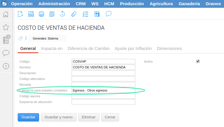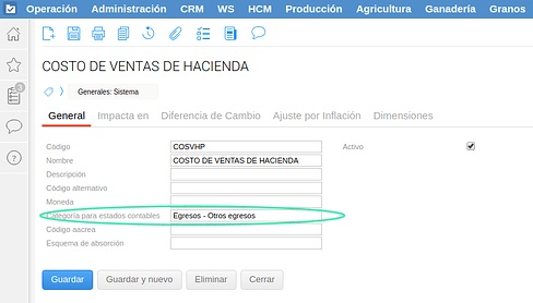 Asignarle la categoría de estados contables de egresos