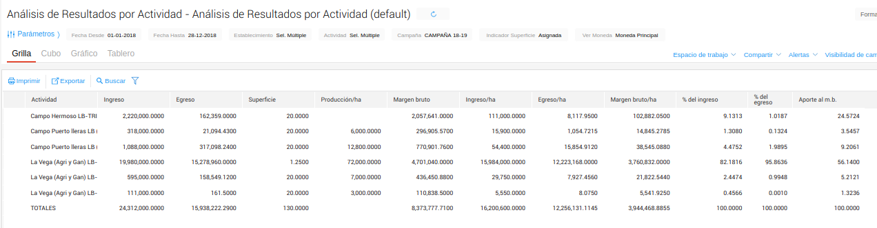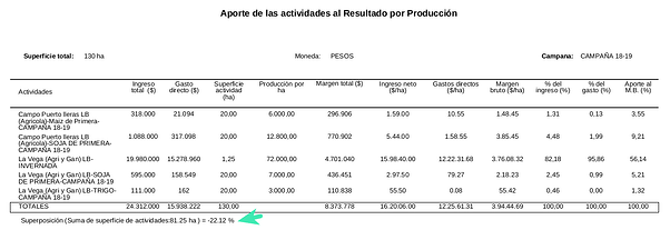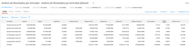 En este instructivo aprenderás cómo analizar de forma ágil en un mismo informe el resultado de cada actividad y su aporte relativo al resultado productivo total y por hectárea.