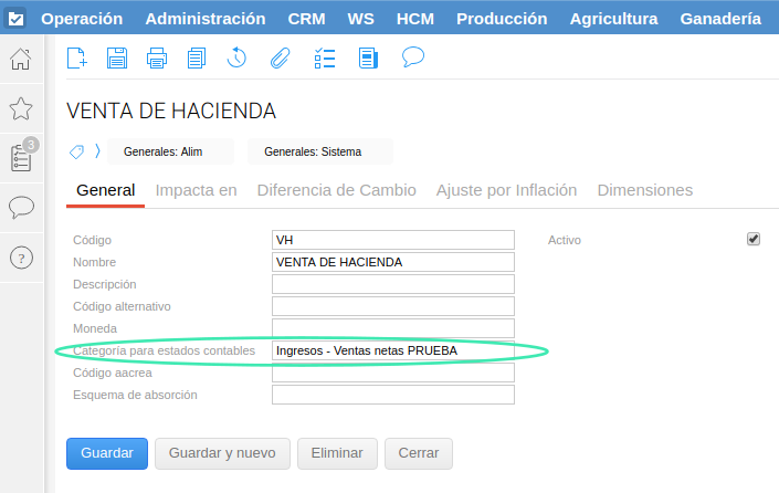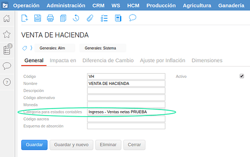 Asignarle la categoría de estados contables de ingresos