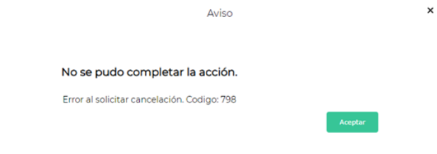 Al querer anular un comprobante se emite el siguiente mensaje de error:
