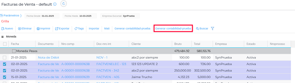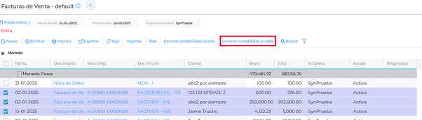 - Seleccionamos las transacciones deseadas que queremos contabilizar y accionamos el bproc configurado.