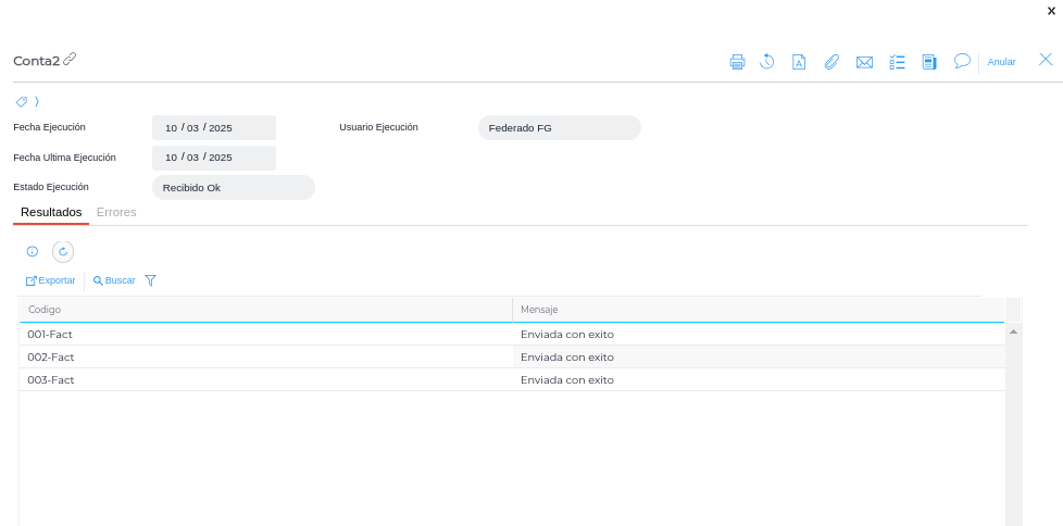 - En este caso, podemos visualizar las facturas enviadas hacia el “Control de contabilización de operaciones”.
