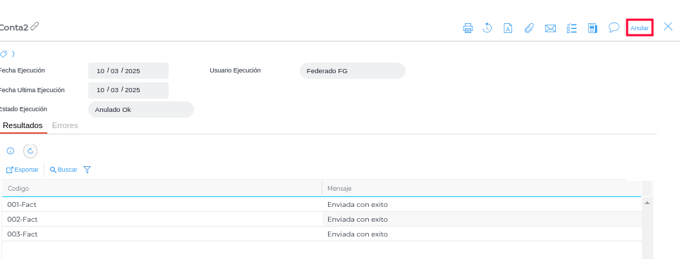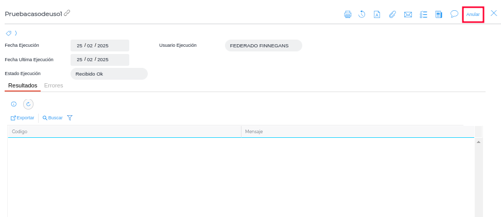 Botón de Anulación: Si el campo de anulación fue configurado correctamente, aparecerá el botón “Anular”.