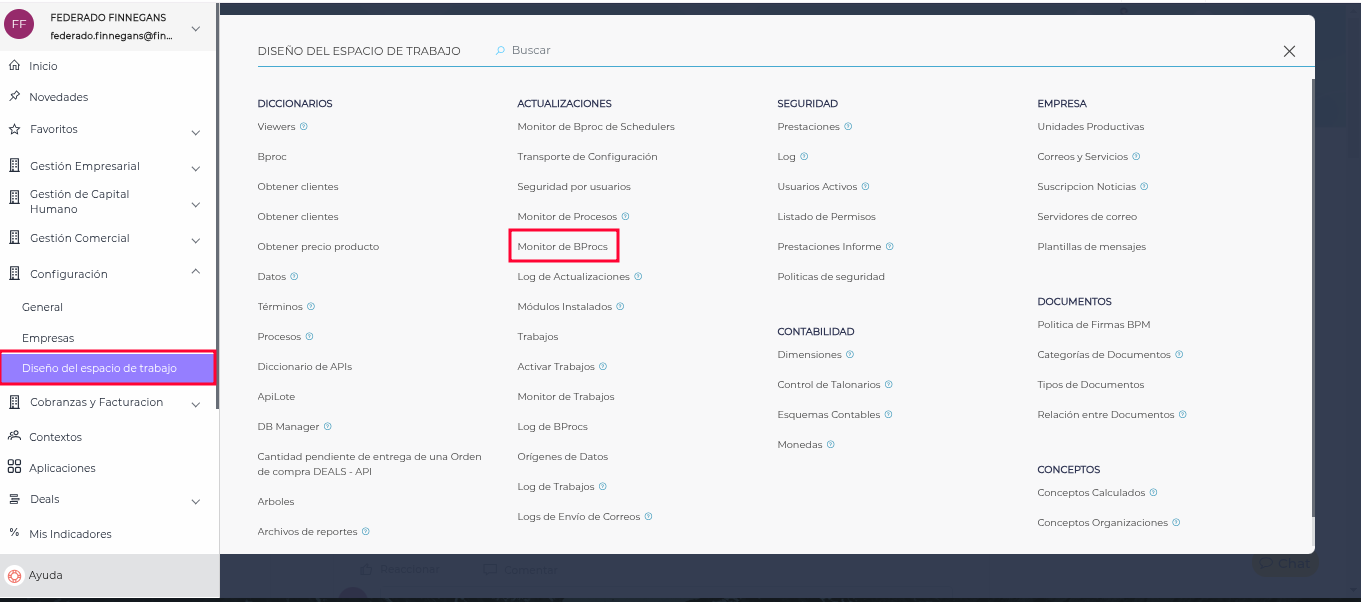 - En caso de errores o modificaciones, ingresar a Monitor de Bprocs.