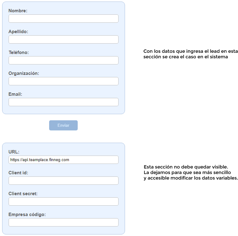 "DataXML": "<data><email>jperez@gmail.com</email><telefono>0346715632212</telefono><nombre>Juan Perez</nombre><empresa>Juan Perez</empresa></data>", → estos datos al accionar el proceso pasan a organización y contacto