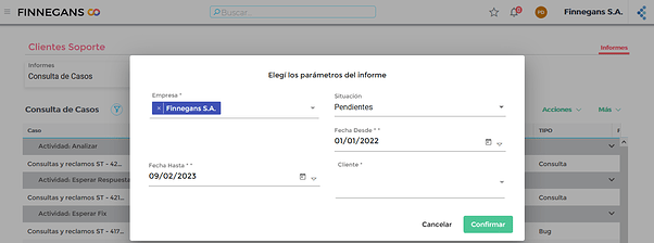 Al confirmar los parámetros, el informe va a mostrar los casos segun el criterio de selección indicado.