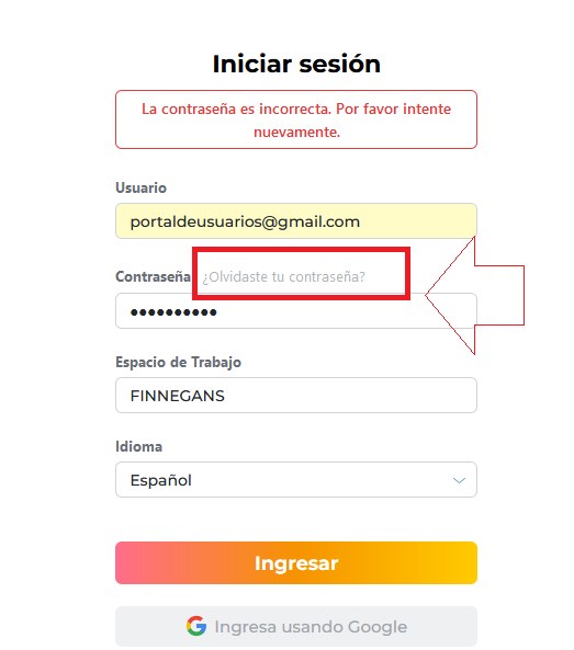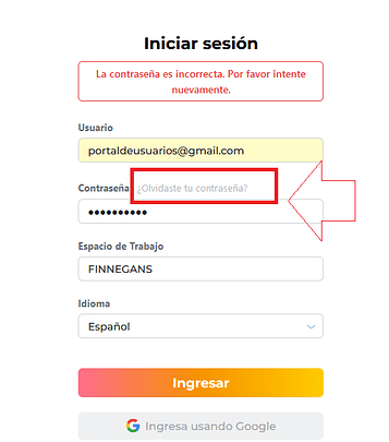 “¿Olvidaste tu contraseña?” para poder restablecerla.