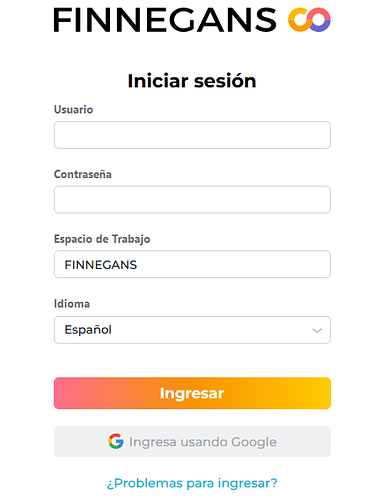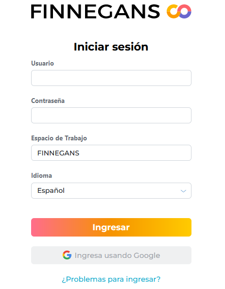 Espacio de trabajo: siempre se debe colocar “FINNEGANS”.